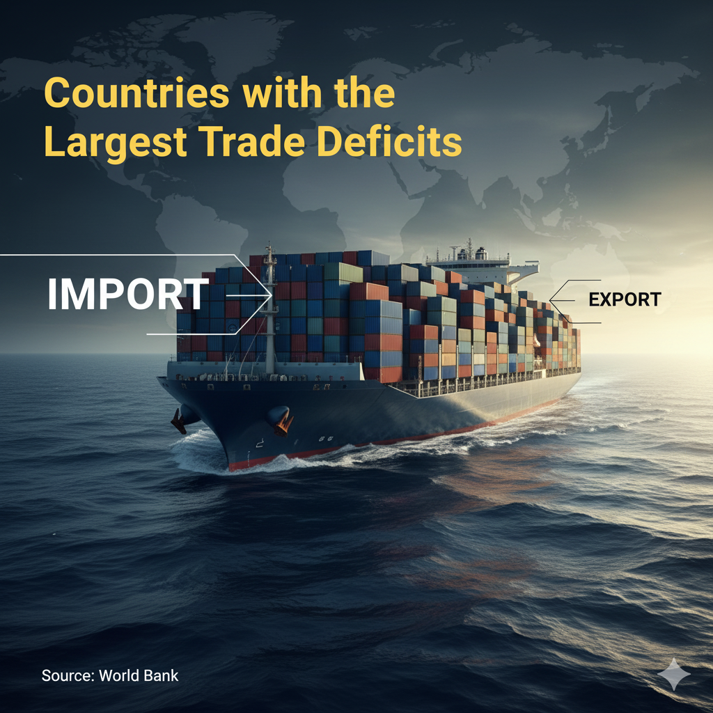 The trade deficit shows a gap in the balance of trade and a recent report from the World Bank shows the Countries with the Largest Trade Deficits.