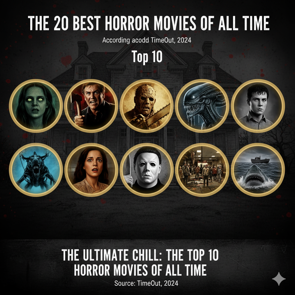 This list presents the ten most terrifying and essential horror movies in cinema history. The ranking comes from a prestigious 2024 list compiled by the film experts at TimeOut.